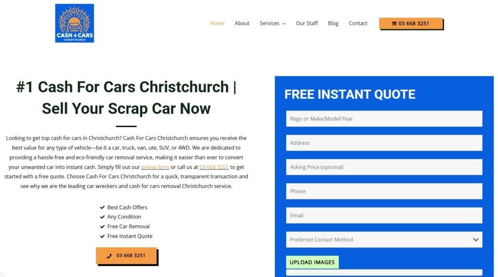Cash for Cars Christchurch is a locally owned vehicle removal business that buys unwanted, damaged, and scrap cars for cash. When they first came to us, they had a basic website and were relying on a mix of word of mouth and inconsistent marketing efforts to bring in leads. They weren’t showing up reliably on Google and lacked a system to generate a steady flow of local enquiries from people ready to sell.