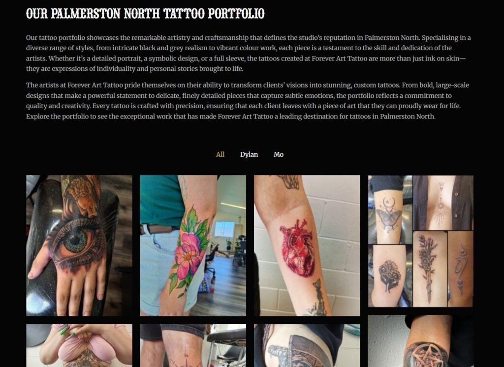 Forever Art Tattoo Studio is a locally owned tattoo shop based in Palmerston North, known for its talented artists and custom designs. At the time they came to us, they had no website and very limited online visibility, relying solely on social media to attract new clients.
